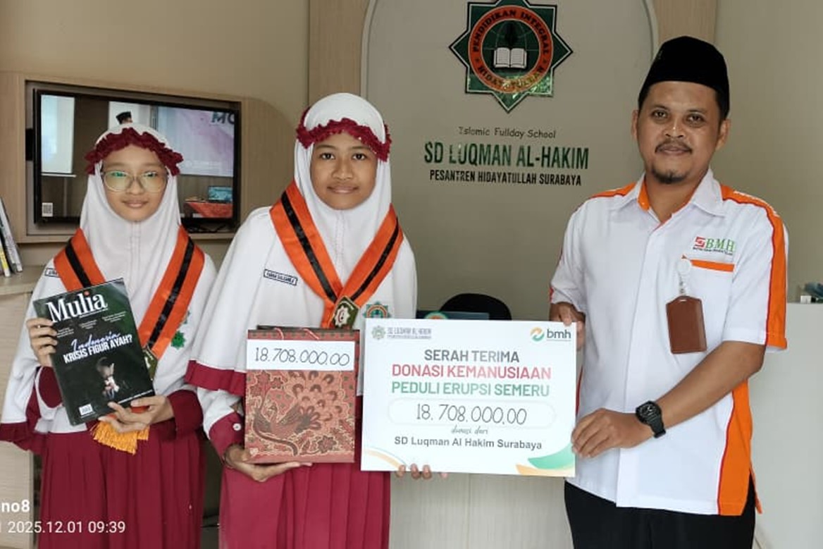 Tidak hanya untuk korban bencana Sumatra, pada Selasa, 2 Desember 2025, SD Luqman Al Hakim Surabaya juga menggelar penggalangan dana untuk korban erupsi Gunung Semeru, Lumajang, Jawa Timur. Letusan tersebut menimbulkan kerugian material, mulai dari hunian warga, fasilitas umum, hingga akses transportasi. Banyak warga harus mengungsi akibat guguran awan panas dan banjir lahar. Tim penyelamat bekerja keras mengevakuasi warga dan menyalurkan bantuan logistik ke berbagai titik pengungsian.