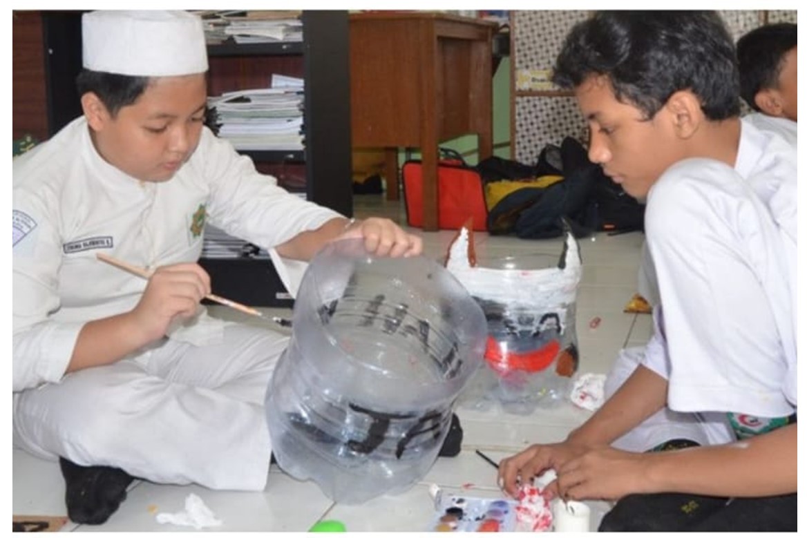 Tahap berikutnya adalah setiap kelompok mencari informasi dari internet pemanfaatan plastik bekas berupa sendok plastik, botol plastik, dan galon mineral. Dari informasi yang didapatkan ditemukan bahwa sendok plastik dan glastik plastik dapat dimanfaatkan sebagai lampu hias dan lampu belajar di kamar, botol plastik dapat dimanfaatkan sebagai tempat permen di ruang tamu, dan galon dapat dijadikan tempat sampah di ruangan. Kelompok yang memanfaatkan sampah bekas berupa kardus dan kaleng menemukan informasi dapat dimanfaatkan sebagai kalender mini, tempat sampah kering, tempat pensil, dan celengan.